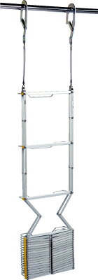 移動・設置が簡単に出来る避難はしご つり下げ金具にはスチール、ワイヤー部分にはステンレスワイヤー、 その他の部分にはアルミ合金を使用し、大幅な軽量化を図りました。